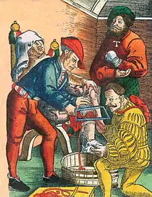 The word Feldsher is derived from the German Feldscher, which was coined in the 15th century. Feldscher (or Feldscherer) literally means "field shearer," but was the term used for barber surgeons in the German and Swiss armies from the 17th century until professional military medical services were established, first by Prussia in the early 18th century. Today, Feldshers do not exist in Germany anymore, but the term was exported with Prussian officers and nobles to Russia. An All-Russia Union of Feldshers was founded in 1905. They were regarded as "Middle Medical Workers".[8]