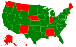 In the United States, FGM was criminalised federally in 1996 and in 17/50 states during 1994–2006.[8] However, the federal law criminalising FGM was declared unconstitutional by a Michigan court in November 2018, mostly because the judge found that the federal government did not have the authority to legislate on the issue, and that the U.S. states should.[12] At the time of the ruling, 27 states had specifically criminalised FGM,[12] and the court case stimulated the other states to do so as well, both during[12] and after the trial.[13] By March 2020, the practice was illegal in 35/50 states;[3] by May 2020, FGM was banned in 38/50 U.S. states.[14] On 5 January 2021, the STOP FGM Act of 2020 was enacted, which considers FGM 'a form of child abuse, gender discrimination, and violence', empowering federal authorities to prosecute people who 'carry out or conspire to carry out FGM' and increasing the maximum prison sentence from 5 to 10 years. This replaced the 1996 law that was declared unconstitutional in 2018. At the time of signing, 11 out of the 50 U.S. states still had no state ban on FGM.[15]