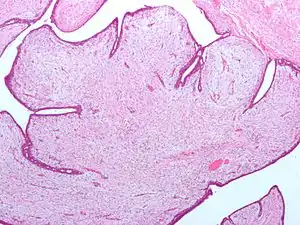 A fibroepithelial neoplasm (or tumor) is a biphasic tumor. They consist of epithelial tissue, and stromal or mesenchymal tissue. They may be benign or malignant.[1]