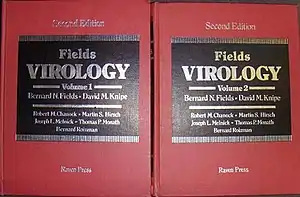 Fields Virology is an English-language virology textbook, originally it was published in two volumes and edited by Bernard N. Fields. The first edition in 1985 was called Virology, but from the second edition, the book's title was changed to Fields Virology. The book is widely regarded as an influential work on the subject and is cited as the bible of virology by many virologists.[1]