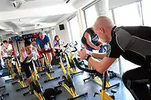 Most 2010-era health clubs offer group exercise classes that are conducted by certified fitness instructors or trainers. Group exercise classes are often considered the most important service in the centers for members' engagement.[3] Many types of group exercise classes exist, but generally these include classes based on aerobics, cycling (spinning), boxing or martial arts, high intensity training, step yoga, regular yoga and hot (Bikram) yoga, pilates, muscle training, stretching, and self-defense classes such as Krav Maga and Brazilian Jiu-Jitsu. Health clubs with swimming pools often offer aqua aerobics classes. The instructors often must gain certification in order to teach these classes and ensure participant safety.