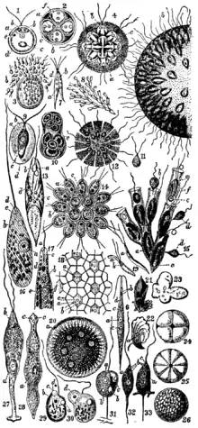 - Fritsch, F.E. The Structure and Reproduction of the Algae. Vol. I. Introduction, Chlorophyceae. Xanthophyceae, Chrysophyceae, Bacillariophyceae, Cryptophyceae, Dinophyceae, Chloromonadineae, Euglenineae, Colourless Flagellata. 1935. Cambridge, England: Cambridge University Press, .
