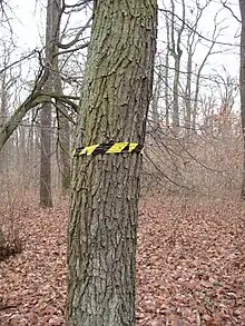 In forestry flagging is commonly used to mark trees for various purposes. It can be used to mark trees for logging, to mark dangerous or unhealthy trees, to mark invasive species, or to mark saplings. State and National forests often use a wide variety of flagging tape, sometimes even getting specially printed tape when the full range of color codes is used up.