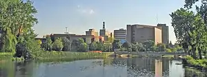 The Flint water crisis was a public health crisis that started in 2014 and lasted until 2019,[2] after the drinking water for the city of Flint, Michigan was contaminated with lead and possibly Legionella bacteria.[1] In April 2014, during a budget crisis, Flint changed its water source from treated Detroit Water and Sewerage Department water (sourced from Lake Huron and the Detroit River) to the Flint River. Residents complained about the taste, smell, and appearance of the water. Officials failed to apply corrosion inhibitors to the water, which resulted in lead from aging pipes leaching into the water supply, exposing around 100,000 residents to elevated lead levels.[7] A pair of scientific studies confirmed that lead contamination was present in the water supply.[8][9] The city switched back to the Detroit water system on October 16, 2015.[10] It later signed a 30-year contract with the new Great Lakes Water Authority (GLWA) on November 22, 2017.[11]