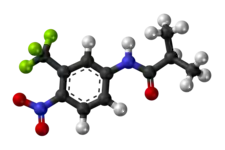 Flutamide, sold under the brand name Eulexin among others, is a nonsteroidal antiandrogen (NSAA) which is used primarily to treat prostate cancer.[8][9] It is also used in the treatment of androgen-dependent conditions like acne, excessive hair growth, and high androgen levels in women.[10] It is taken by mouth, usually three times per day.[11]