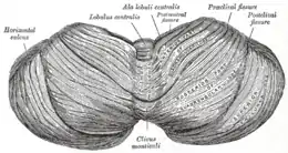 The folium vermis is a short, narrow, concealed band at the posterior extremity of the vermis, consisting apparently of a single folium, but in reality marked on its upper and under surfaces by secondary fissures.