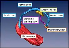 ![]() Diagram of the fornix. Right=anterior | |