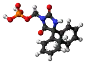 Fosphenytoin, also known as fosphenytoin sodium, and sold under the brand name Cerebyx among others, is a water-soluble phenytoin prodrug that is administered intravenously to deliver phenytoin, potentially more safely than intravenous phenytoin. It is used in the acute treatment of convulsive status epilepticus.
