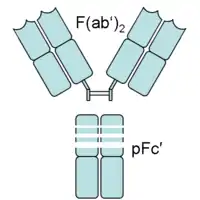 In a new development in the field of antibody-based therapeutics, the Fc region of immunoglobulins has been engineered to contain an antigen-binding site.[7] This type of antigen-binding fragment is called Fcab. Fcab fragments can be inserted into a full immunoglobulin by swapping the Fc region, thus obtaining a bispecific antibody (with both Fab and Fcab regions containing distinct binding sites). These bispecific monoclonal antibodies are sometimes referred to as mAb2.[8]