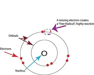 In chemistry, a free radical is any atom, molecule, or ion with an unpaired valence electron