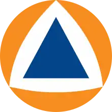 Its logo, a blue triangle on white and orange ground, comes from the international distinctive sign of civil defence,[1] which is a protective sign under the protection of the four Geneva Conventions of 1949.