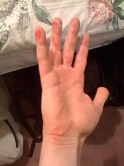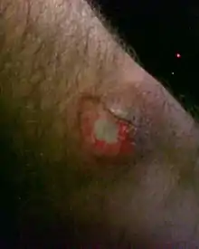 A friction burn is a form of abrasion caused by the friction of skin rubbing against a surface. A friction burn may also be referred to as skinning, chafing, or a term named for the surface causing the burn such as rope burn, carpet burn or rug burn. Because friction generates heat, extreme cases of chafing may result in genuine burning of the outer layers of skin.[1]