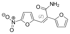 (Z)-2-(2-Furyl)-3-(5-nitro-2-furyl)prop-2-enamide AF-2,[1] Tofuron, Alpha-2-furyl-5-nitro-2-furanacrylamide, 2-(2-Furyl)-3-(5-nitro-2-furyl)acrylic acid amide, | |