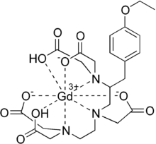 Gadoxetic acid is a gadolinium-based MRI contrast agent. Its salt, gadoxetate disodium, is marketed as Primovist in Europe and Eovist in the United States by Bayer HealthCare Pharmaceuticals.[1]