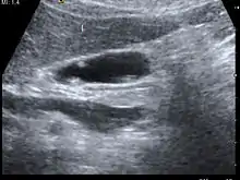Adenomyomatosis describes a diseased state of the gallbladder in which the gallbladder wall is excessively thick, due to proliferation of subsurface cellular layer. It is characterized by deep folds into the muscularis propria. Ultrasonography may reveal the thickened gallbladder wall with intramural diverticulae, called Rokitansky-Aschoff sinuses.[3]