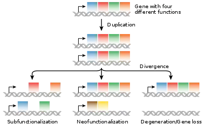 - Conant GC, Wolfe KH (December 2008). "Turning a hobby into a job: how duplicated genes find new functions". Nature Reviews. Genetics. 9 (12): 938–50. doi:10.1038/nrg2482. PMID 19015656. S2CID 1240225.
