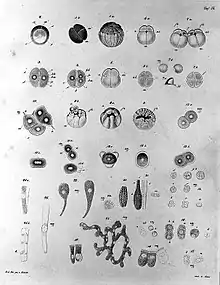 Fertilization leads to the formation of a zygote. During the next stage, cleavage, mitotic cell divisions transform the zygote into a hollow ball of cells, a blastula. This early embryonic form undergoes gastrulation, forming a gastrula with either two or three layers (the germ layers). In all vertebrates, these progenitor cells differentiate into all adult tissues and organs.[5]