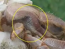 Aquatic arthropods usually have gills which are in most cases modified appendages. In some crustaceans these are exposed directly to the water, while in others, they are protected inside a gill chamber.[12] Horseshoe crabs have book gills which are external flaps, each with many thin leaf-like membranes.[13]