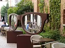Giordano's colleague Friar Alessandro della Spina of Pisa (d. 1313) was soon making eyeglasses. The Ancient Chronicle of the Dominican Monastery of St. Catherine in Pisa records: "Eyeglasses, having first been made by someone else, who was unwilling to share them, he [Spina] made them and shared them with everyone with a cheerful and willing heart."[33] By 1301, there were guild regulations in Venice governing the sale of eyeglasses.[34] In the fourteenth century they were very common objects: Francesco Petrarca says in one of his letters that, until he was 60, he didn't need glasses,[35] and Franco Sacchetti mentions them often in his Trecentonovelle.