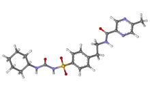 Glipizide, sold under the brand name Glucotrol among others, is an anti-diabetic medication of the sulfonylurea class used to treat type 2 diabetes.[1][2] It is used together with a diabetic diet and exercise.[1][2] It is not indicated for use by itself in type 1 diabetes.[1][2] It is taken by mouth.[1][2] Effects generally begin within half an hour and can last for up to a day.[1]