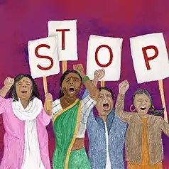 Although statistics can be difficult to obtain as many cases go unreported, it is estimated that one in every five women faces some form of violence during her lifetime, in some cases leading to serious injury or even death.[55] Risk factors for being an offender include low education, past exposure to child maltreatment or witnessing violence between parents, harmful use of alcohol, attitudes accepting of violence and gender inequality.[56] Equality of women has been addressed in the Millennium development goals. Now, Gender Equality is Sustainable Development Goal 5. Preventing the violence against women needs to form an essential part of the public health reforms in the form of advocation and evidence gathering. Primary prevention in the form of raising women economic empowerment facilities, microfinance and skills training social projects related to gender equality should be conducted. Activities promoting relationship and communication skills among couples, reducing alcohol access and altering societal ideologies should be organized. Childhood interventions, community and school-based education, raising media-oriented awareness and other approaches should be carried out to challenge social norms and stereotypical thought processes to promote behavioral change among men and raise gender equality. Trained health care providers would play a vital role in secondary and tertiary prevention of abuse, by performing early identification of women suffering from violence and contributing to the addressing of their health and psychological needs. They could be highly important in prevention of the recurrence of violence and the mitigation of its effects on the health of the abused women and their children.[57] The Member States of the World Health Assembly endorsed a plan in 2016 for reinforcing the health system's role in addressing the global phenomenon of violence against women and girls and working towards their health and protection.[58]