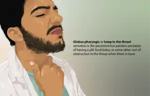 Globus pharyngis or globus sensation is the persistent but painless sensation of having a pill, food bolus, or some other sort of obstruction in the throat when there is none. Swallowing is typically performed normally, so it is not a true case of dysphagia, but it can become quite irritating. It is common, with 22–45% of people experiencing it at least once in their lifetime.[1][2]