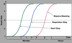 The golden hour is the period of time following a traumatic injury during which there is the highest likelihood that prompt medical and surgical treatment will prevent death.[1][2] While initially defined as an hour the exact time period depends on the nature of the injury and can be more than or less than this duration.[2] It is well established that the person's chances of survival are greatest if they receive care within a short period of time after a severe injury; however, there is no evidence to suggest that survival rates drop off after 60 minutes. Some have come to use the term to refer to the core principle of rapid intervention in trauma cases, rather than the narrow meaning of a critical one-hour time period.