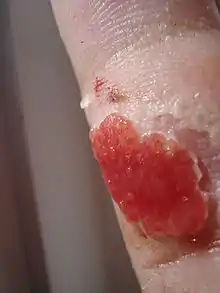 An excess of granulation tissue (caro luxurians) is informally referred to as "proud flesh".[3]