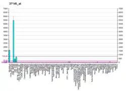 GNLY gene is located on human chromosome 2 and has 5 exons, which code for a 15 kDa protein.[3] The path to transcription has not been elucidated: transcription factors, promoter regions, and pathogen-associated molecular patterns, which likely induce the signaling pathway necessary for the eventual translation of this protein, are unknown.[3] Granulysin is expressed in killer cells, such as cytotoxic T cells and Natural Killer (NK) cells, which hold the cytotoxic granules this protein is contained in.[3][4] These cells can be found mainly in the epidermis to protect against infection spreading through the skin.[3] In addition, high expression of Granulysin can be found in the placenta to protect fetal epithelial cells.[3]