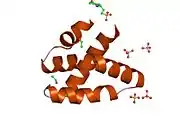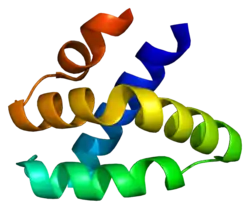 Granulysin has a five alpha-helix structure, and is part of the saponin-like protein family.[5] It is expressed in 2 forms: a 15kDa precursor protein, the translation product, and a 9kDa cytotoxic protein, which is formed after cleavage of the amino and carbonyl ends of the 15kDa protein.[5][4][3]