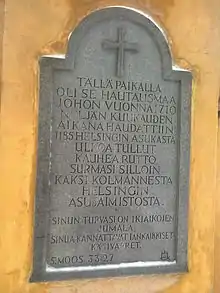 There are however no doubts concerning the outbreak of the plague in late November 1710 in the small village of Lappen just north of Helsingør, populated by fishermen, ferrymen and nautical pilots.[85] The first death attributed to the plague was that of a fisherman's daughter on 14 November;[87] the peak of the plague in Lappen was reached already on 23 December, and while it faded out there in January 1711, it had already spread to or continued in neighboring Helsingør.[88] More than 1,800 people died in Helsingør in 1711, or roughly two thirds of its ~3,000 inhabitants.[89]