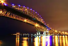 "Blue infrastructure" refers to urban infrastructure relating to water. Blue infrastructure is commonly associated with green infrastructure in the urban setting and may be referred to as "blue-green" infrastructure when in combination. Rivers, streams, ponds and lakes may exist as natural features within cities, or be added to an urban environment as an aspect of its design. Urban developments on coasts may also have pre-existing features of the coastline specifically employed in their design. Harbours, quays, piers and other extensions of the urban environment may also be added to capture benefits associated with the marine environment. Blue infrastructure can support unique aquatic biodiversity in urban areas, including aquatic insects,[9] amphibians,[10] and waterbirds.[11] There may considerable co-benefits to health and wellbeing of populations with access to blue spaces in the urban context.[12][13] Accessible blue infrastructure in urban areas is also referred as to blue spaces.