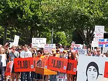 Gun violence in the United States results in tens of thousands of deaths and injuries annually.[92] In 2013, there were 73,505 nonfatal firearm injuries (23.2 injuries per 100,000 U.S. citizens),[93][94] and 33,636 deaths due to "injury by firearms" (10.6 deaths per 100,000 U.S. citizens).[95] These deaths consisted of 11,208 homicides,[96] 21,175 suicides,[95] 505 deaths due to accidental or negligent discharge of a firearm, and 281 deaths due to firearms use with "undetermined intent".[95] Of the 2,596,993 total deaths in the US in 2013, 1.3% were related to firearms.[92][97] The ownership and control of guns are among the most widely debated issues in the country.