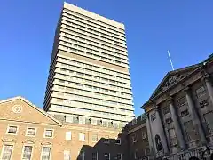 The hospital's Tower Wing (originally known as Guy's Tower) was, when built, the tallest hospital building in the world, standing at 148.65 metres (487.7 ft) with 34 floors. The tower was overtaken as the world's tallest healthcare-related building by The Belaire in New York City in 1988. As of June 2019, the Tower Wing, which remains one of the tallest buildings in London, is the world's fifth-tallest hospital building.[2]