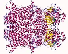 Hyperpolarization-activated cyclic nucleotide–gated (HCN) channels are integral membrane proteins that serve as nonselective voltage-gated cation channels in the plasma membranes of heart and brain cells.[1] HCN channels are sometimes referred to as pacemaker channels because they help to generate rhythmic activity within groups of heart and brain cells. HCN channels are encoded by four genes (HCN1, 2, 3, 4) and are widely expressed throughout the heart and the central nervous system.[2][3]