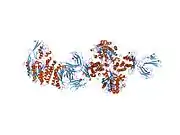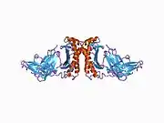 26. West AP, Bennett MJ, Sellers VM, Andrews NC, Enns CA, Bjorkman PJ (December 2000). "Comparison of the interactions of transferrin receptor and transferrin receptor 2 with transferrin and the hereditary hemochromatosis protein HFE". The Journal of Biological Chemistry. 275 (49): 38135–8. doi:10.1074/jbc.C000664200. PMID 11027676.