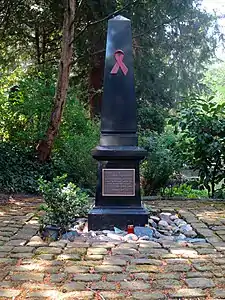 A obelisk stands in memorial to victims of AIDS inside a Heidelberg, (Germany) cemetery
