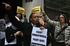 ACT UP protesters in New York City demonstrate against Uganda's controversial Anti-Homosexuality Bill.