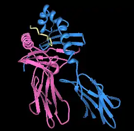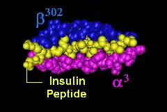 | Rendering of HLA-DQ8 with immundominant insulin peptide in the binding pocket. | |||