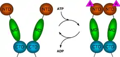 The C-terminal domain possesses an alternative ATP-binding site, which becomes accessible when the N-terminal Bergerat pocket is occupied.[26][27]