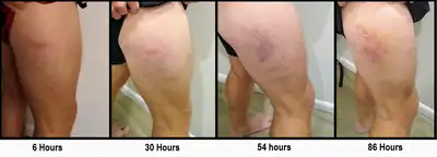 Intramuscular hematoma development and progression on the vastus lateralis muscle from 6 hours after trauma to 86 hours.