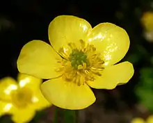 The maogen (毛茛; máogèn; mao-ken "Ranunculus japonicus; buttercup") is a poisonous plant with bright yellow flowers. The Daoist alchemist Ge Hong's c. 340 Zhouhou jiuzu fang (肘後救卒方 "Remedies for Emergencies", tr. Li 1977: 172) says, "Among the herbs there is the Shui Lang (water Lang, a kind of Mao-ken) a plant with rounded leaves which grows along water courses and is eaten by crabs. It is poisonous to man and when eaten by mistake, it produces a maniacal delirium, appearing like a stroke and sometimes with blood-spitting. The remedy is to use licorice." Later herbals, which do not mention maogen as a deliriant, say the whole plant is considered poisonous and is should only be externally used as a medicine for irritation and inflammation.