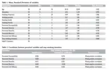 Table 2 shows that all variables besides perceived barriers had a weak positive correlation. In regards to perceived susceptibility, the respondents agreed that they were vulnerable to the health and social consequences associated to women smokers; however, they did not fully believe that smoking would trigger such severe health concerns or social consequences therefore they had a low desire to stop smoking. Similarly, with perceived severity the respondents did not view their habits as having a severe consequence therefore they had a low desire to quit. Additionally, the perceived benefits had a weak positive correlation meaning that the individuals saw that the adoption of healthy behaviors would have a beneficial impact on their overall lifestyle. Perceived barriers showed a weak negative correlation meaning that the more barriers the individual associated with stopping smoking then the less likely they were to quit. Lastly, the perceived self-efficacy of respondents were low and this led to a low desire to quit smoking.