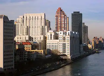 Graphic of hospital beds per 1000 people globally in 2013, at top;[1] New York–Presbyterian Hospital in New York City is one of the world's busiest hospitals, below. Pictured is the Weill-Cornell facility (white complex at the center)