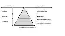 - On the organizational aspect, the health care system comprises from the top to bottom: