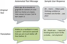 Communicators need to continually synthesize knowledge from a range of other scholarly disciplines including marketing, psychology, and behavioural sciences.[2] Once this information has been collected, professionals can choose from a variety of methods and strategies of communication that they believe would best convey their message. These methods include campaigns, entertainment advocacy, media advocacy, new technologies, and interpersonal communication.[5]