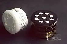 Radon has been produced commercially for use in radiation therapy, but for the most part has been replaced by radionuclides made in accelerators and nuclear reactors. Radon has been used in implantable seeds, made of gold or glass, primarily used to treat cancers. The gold seeds were produced by filling a long tube with radon pumped from a radium source, the tube being then divided into short sections by crimping and cutting. The gold layer keeps the radon within, and filters out the alpha and beta radiations, while allowing the gamma rays to escape (which kill the diseased tissue). The activities might range from 0.05 to 5 millicuries per seed (2 to 200 MBq).[83] The gamma rays are produced by radon and the first short-lived elements of its decay chain (218Po, 214Pb, 214Bi, 214Po).