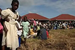 - Nodding syndrome hit the region during the early to mid-2000s, although the international community did not become aware of it until 2009 when the WHO and the US Centers for Disease Control and Prevention first investigated it.[49] The disease affected children aged 5–15 years, mainly in the Acholi sub-region and a few in the Lango sub-region.[50] Over 3,000 confirmed cases were documented as of 2012, with Uganda having the highest number of cases in the world.[51] The disease has profound health effects on children, families, and communities.[52] The children who were previously healthy and growing well are observed by the parents to nod mainly at meal times initially, progressing to head nod when it is cold, etc. These children eventually develop various forms of epileptic seizures as well as disabilities such as severe malnutrition, burns, contractures, severe kyphosis, cognitive impairment, and wandering away from homes.[52] Since the interventions began in 2012, there have been no new cases reported in the region. The exact cause of this disease has not been found, although there is strong association with onchocerciasis. Communities believe their children could have been exposed to chemicals during the war, particularly when they were displaced into internally displaced persons camps because they observed that their children became sick only when in the camps.[53]