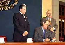 The Mexican healthcare program, as we know it today, has its base on the creation of several health codes that ran during the first part of the 20th century.[11] In 1943, the Mexican Secretariat of Health and Assistance was established to merge the Department of Public Sanitation and the Secretariat of Public Assistance. In that same year, the Mexican Social Security Institute and the Mexican Children's Hospital were founded, during the presidency of Manuel Avila Camacho.[12] After this, several and important changes came, aiming to provide better health for the population. In 1959, the Institute for Social Security and Services for State Workers (ISSSTE) was formed as a way of more effectively covering the health services of individuals employed in government institutions. The Seguro Popular, or Popular Health Insurance, was implemented countrywide in 2003 after the creation of the Social System during the presidency of Vicente Fox Quesada. This short lived institution was neither secure nor popular, and was plagued with corruption.[1] It was replaced by the Institute of Health for Welfare (INSABI) making true for the first time the constitutional mandate to ensure free access to healthcare to anyone regardless of income or race.[1]