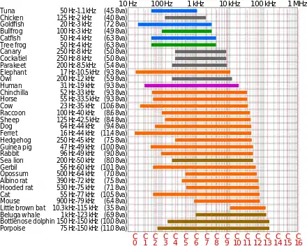 - "Frequency Hearing Ranges in Dogs and Other Species". www.lsu.edu. Archived from the original on 2017-08-10.